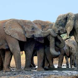 Elefantengespräche: Wer so sozial ist, muss sich gut verständigen können. Elefanten können grollen, brüllen, bellen, grunzen und trompeten. Zehn verschiedene solcher Lautarten haben Wissenschaftler bislang entdeckt.
