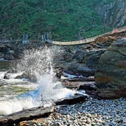 Mit ungewohnt vielen Touristen liefen wir gemeinsam zur „Suspension Bridge“, der bekannten Hängebrücke, welche über den „Storms River“ führt.