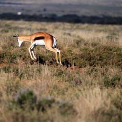Auf rund 70 Kilometer langen Schotterwegen kann man durch den Mountain Zebra Nationalpark fahren und das Wild beobachten. Einige Trails sind allerdings nur für Geländewagen (4x4) zugelassen. In der Hoffnung den wenigen im Park vorkommenden "Cheetas", Nashörnern oder Löwen zu begegnen, bogen wir auf den 14 km langen "Sonnenrust 4x4 Trail" ab. Nach 2:15 Stunden Fahrt und nur wenigen Sichtungen von verschiedenen Antilopenarten sowie der seltenen, hier lebenden, Kap-Bergzebra, kehrten wir auf die Hauptroute zurück.