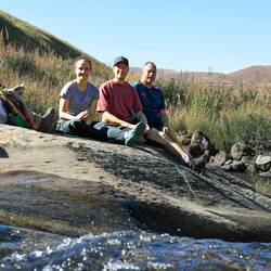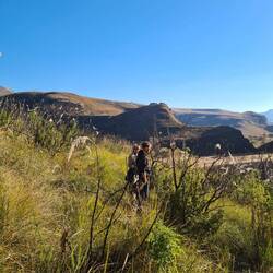 Heute gings auf eine Wanderung: geplant waren 3 Stunden. Schliesslich haben wir eine fünfstündige Freestyleroute gemacht. (nicht ohne Risiko😅) Sie führte uns auf engen "selbstgestampften Pfaden", durch hohes Gras und über einen Bach bis auf einen Hügel. Der Höhepunkt war der Panoramablick auf die Drakensberge (Giant's Castle), dessen Grat die Grenze von Südafrika zu Lesotho bildet. Zum Abschluss des Tages machen wir ein Braii. (Typisches "Brätle" für SüdafrikanerInnen)