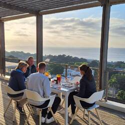 Als Zwischenstopp erwartete uns eine moderne Unterkunft (Ocean Vista) mit atemberaubendem Ausblick aufs Meer. Am Nachmittag schlenderten wir der Strandpromenade entlang in Richting Stadtzentrum und liessen es uns bei einem reichhaltigen Apéro gut gehen. Fürs Abendessen haben wir uns für Seafood im "Big Fish" Restaurant entschieden. Sehr empfehlenswert! Nach längerem Suchen und Fragen in Pubs (in denen nur Rugby lief🫣) machten wir Halt in einem Kaffee und schauten die erste Halbzeit des CL-Finals.