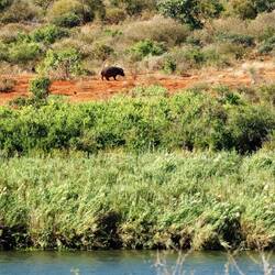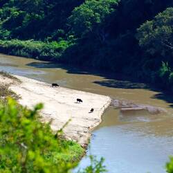 Heute gings das erste Mal auf Safari. Mit unserem Mietauto fuhren wir durch den traumhaften Nationalpark in der Nähe von St. Lucia. Gekennzeichnet von seiner tropischen Vegetation liegt er zwischen dem grossem Lake St. Lucia und dem Indischen Ozean. Zuerst durften wir ein kleines Krokodil beobachten, das die Strasse passierte. Danach sahen wir Hippos, Büffel, Zebras, Impalas, Kudus, Dik-dik und Warzenschweine.
