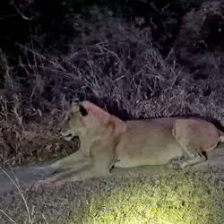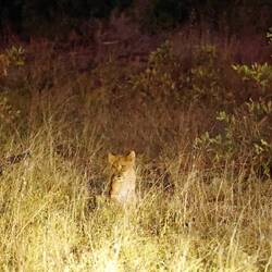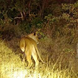 Kurz nach Sonnenuntergang kreuzten mehrere Löwinnen, mit zwei Jungtieren, unseren Weg und liessen sich aus kurzer Distanz beobachten. Welch gelungener Start in die Privat-Gamedrive-Reihe.