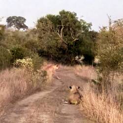 Der Guide erklärte uns, dass die Löwen sehr hungrig waren und sich eine Jagdstrategie überlegten, um an einen Büffel ranzukommen. Die drei Raubkatzen in der Abendszenerie hautnah zu erleben, war ein weiteres Highlight. Zu guter Letzt wurden wir bei unserem Sundowner mit einem farbenprächtigen Sonnenuntergang belohnt.