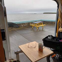 Windy pitch up before getting on early morning ferry to Belfast. Winter ferries are great as not busy - mostly lorry drivers kipping