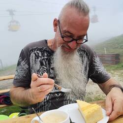 Im Tal schlechtes Wetter und durch die Wolkendecke erwartete uns dann oben der Sonnenschein 🌞🥰 und der leckerste Käsekuchen ever 😋