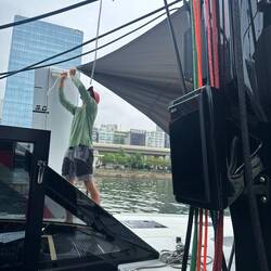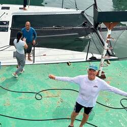 Sea trails day. 25 knots of wind, lumpy seas and monsoon rains. Our goals is to learn how the reefing system works and how to hoist some of the different jibs. Just walking around the boat in 25 knotsRead more