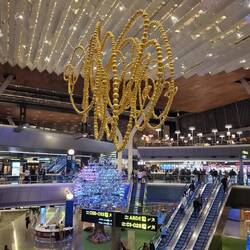 Nach nur 5 Stunden und 30 Minuten landeten wir pünktlich in Doha – fast so, als hätte jemand die Zeit gestoppt. Der Flughafen ist, wie alle arabischen Flughäfen, richtig prunkvoll – hier glitzert und blinkt es an jeder Ecke. Alle großen Edelmarken haben ihre eigenen Shops, da fühlt man sich fast wie im Schlaraffenland für Luxusliebhaber.