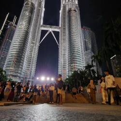Unser nächstes Ziel sind die Wasserspiele direkt an den Petronas Tower. Herrlich. Toll inszeniert und mit guter Musik unterlegt.