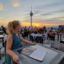 Der Tag endete auf dem Heli Pad – eine Rooftop-Bar mit 360°-Ausblick über Kuala Lumpur. Lichtermeer, gute Musik, kühle Drinks und das Gefühl, mitten im Leben zu stehen.