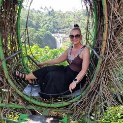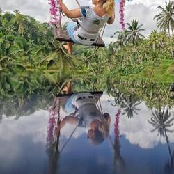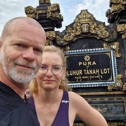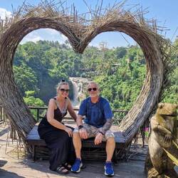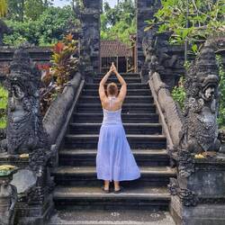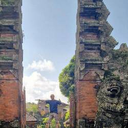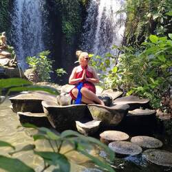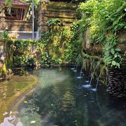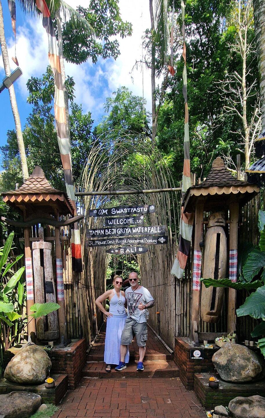 Von Ubud aus machten wir uns auf den Weg Richtung Tanah Lot. Die Fahrt nutzten wir, um unterwegs noch zwei ganz besondere Orte zu entdecken. Ein Highlight war definitiv ein traditionelles balinesisches Reinigungsritual – ein spirituelles Erlebnis, das uns beide tief beeindruckt hat. Theresia machte das komplette Ritual mit, das sich über eine intensive, meditative Stunde zog. Es war ein kraftvoller Moment, voller Ruhe, Wasser und Zeremonie – irgendwie magisch.