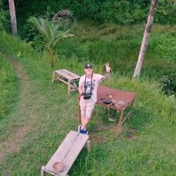 Heute ließen wir es ruhig angehen – zumindest Theresia. Ich hingegen war schon früh wach. So richtig zur Ruhe komme ich nie, vor allem nicht an einem so spannenden Ort wie diesem. Ein kräftiger indonesischer Kaffee weckte auch die letzten müden Zellen. Meine Drohne durfte später am Vormittag kurz in die Luft, um ein paar Aufnahmen der nahegelegenen Reisfelder einzufangen, die direkt neben unserem kleinen Haus in der Morgensonne glänzten.