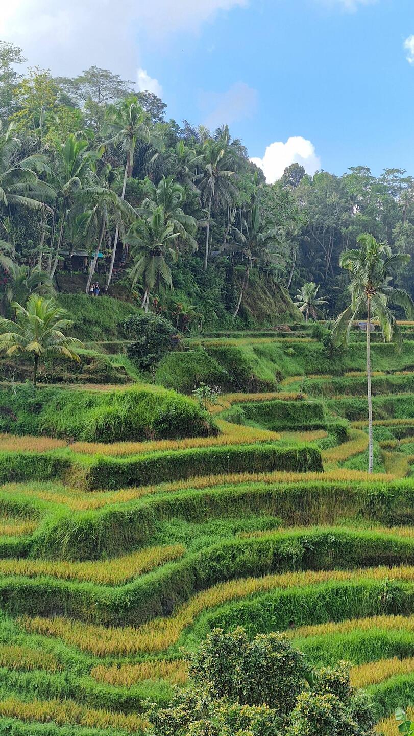 Nach etwa 25 Minuten erreichten wir den ersten Aussichtspunkt. Die Reisterrassen von Tegallalang sind terrassenförmig angelegte Felder, die der Bergform angepasst wurden – ein traditionelles Bewässerungssystem namens „Subak“, das von der UNESCO als Weltkulturerbe anerkannt wurde, sorgt dafür, dass das Wasser gleichmäßig fließt.