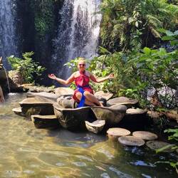 Wir besuchten beeindruckende Tempel, bestaunten Wasserfälle, die wie silberne Schleier durch den Dschungel fielen, und schwitzten dabei unter der brennenden Sonne. Die Hitze war drückend, aber zum Glück blieb der angekündigte Regen aus – im Gegensatz zur Nacht, in der ein kräftiges Tropengewitter über uns hinwegzog.