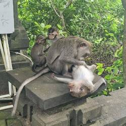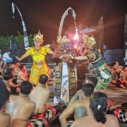 Am Abend stand eigentlich ein gemeinsamer Besuch des berühmten Kecak-Tanzes im Tempel Pura Luhur Uluwatu auf dem Programm. Doch auch diesen musste ich allein wahrnehmen. Im Nachhinein vielleicht gar nicht so schlecht – denn der Tempel war von frechen Affen nur so belagert. Theresia hätte sich dort alles andere als wohlgefühlt. Ich wurde sogar Zeuge, wie einem Gast die Brille geklaut wurde. Gemeinsam mit einem Parkwächter gelang es uns zum Glück, das gute Stück zurückzubekommen.