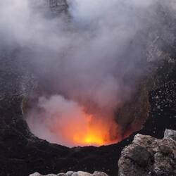 Heute erkunden wir den Vulkan Mombacho nahe Granada. Der letzte Ausbruch ereignete sich 1570, seither gibt er nur noch hin und wieder Rauchschwaden ab. Der ganze Vulkan ist von dichtem NebelwaldMeer informatie