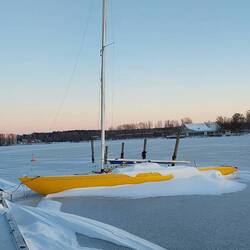 Eigentlich wollten wir heute Morgen auf den zugefrorenen Vänernsee. Aber die niedrigen Temperaturen und der starke NO Wind lässt uns zögern. Dank guter Heizung und Decken, dieLeer más