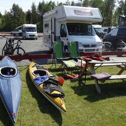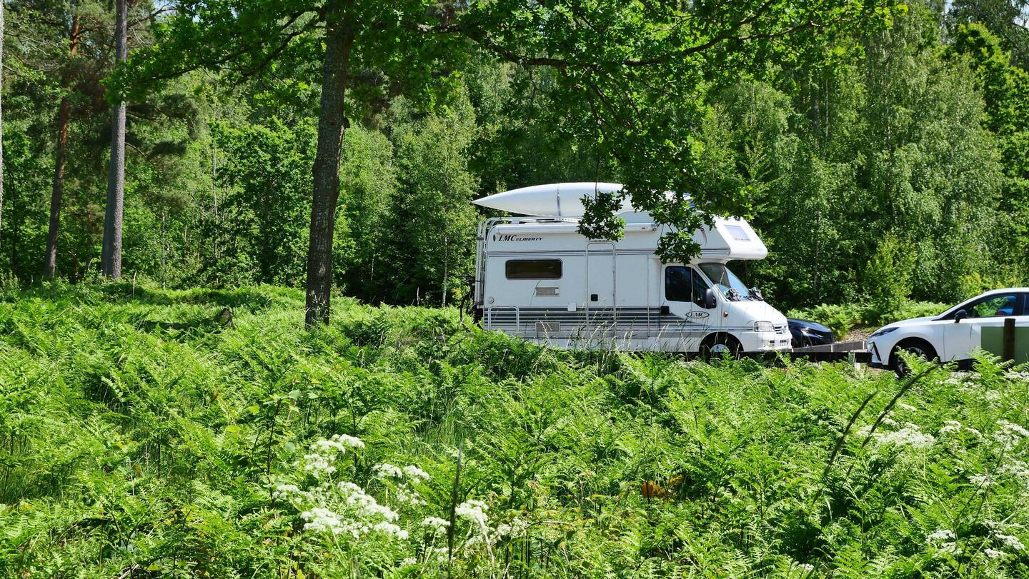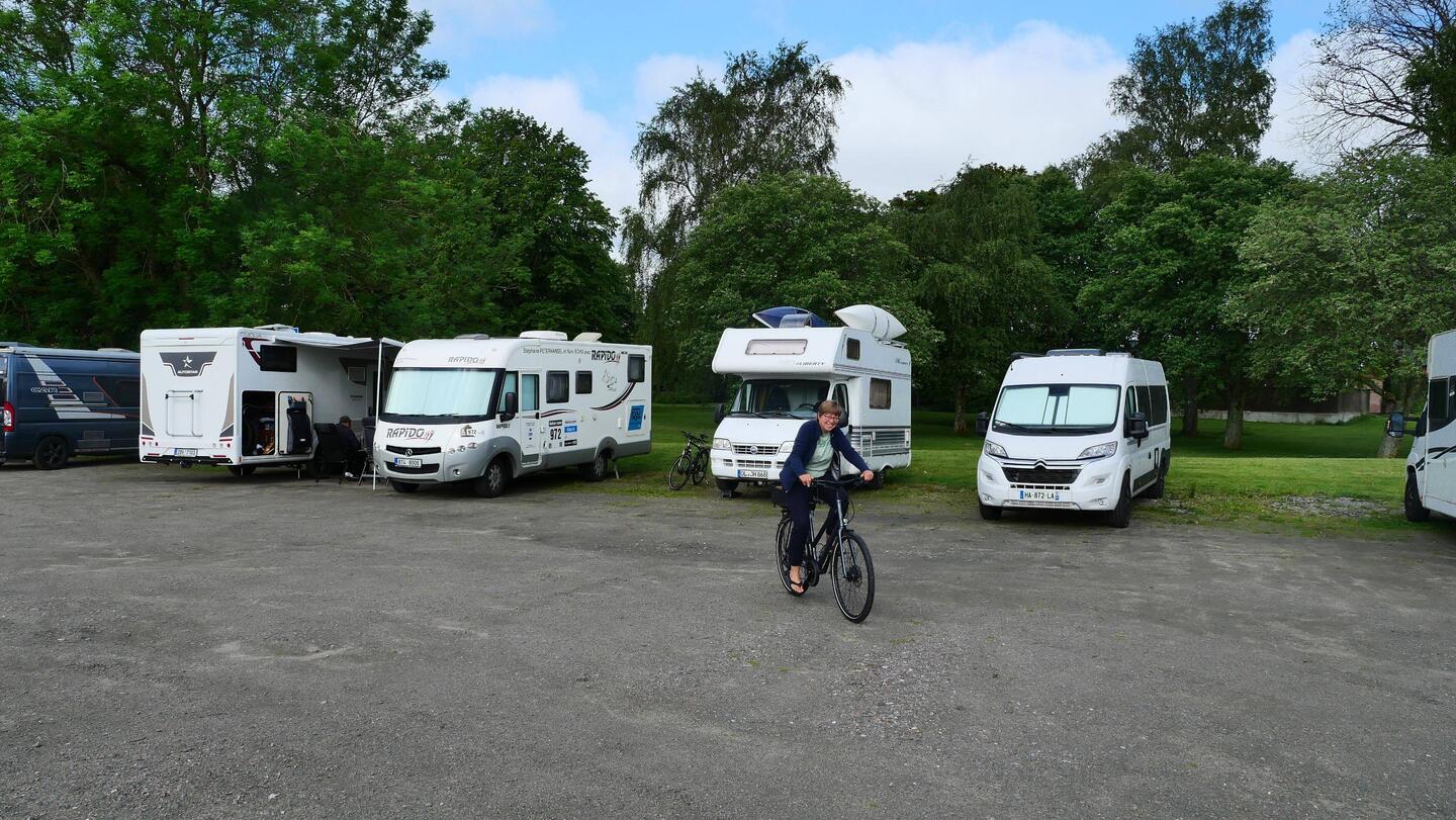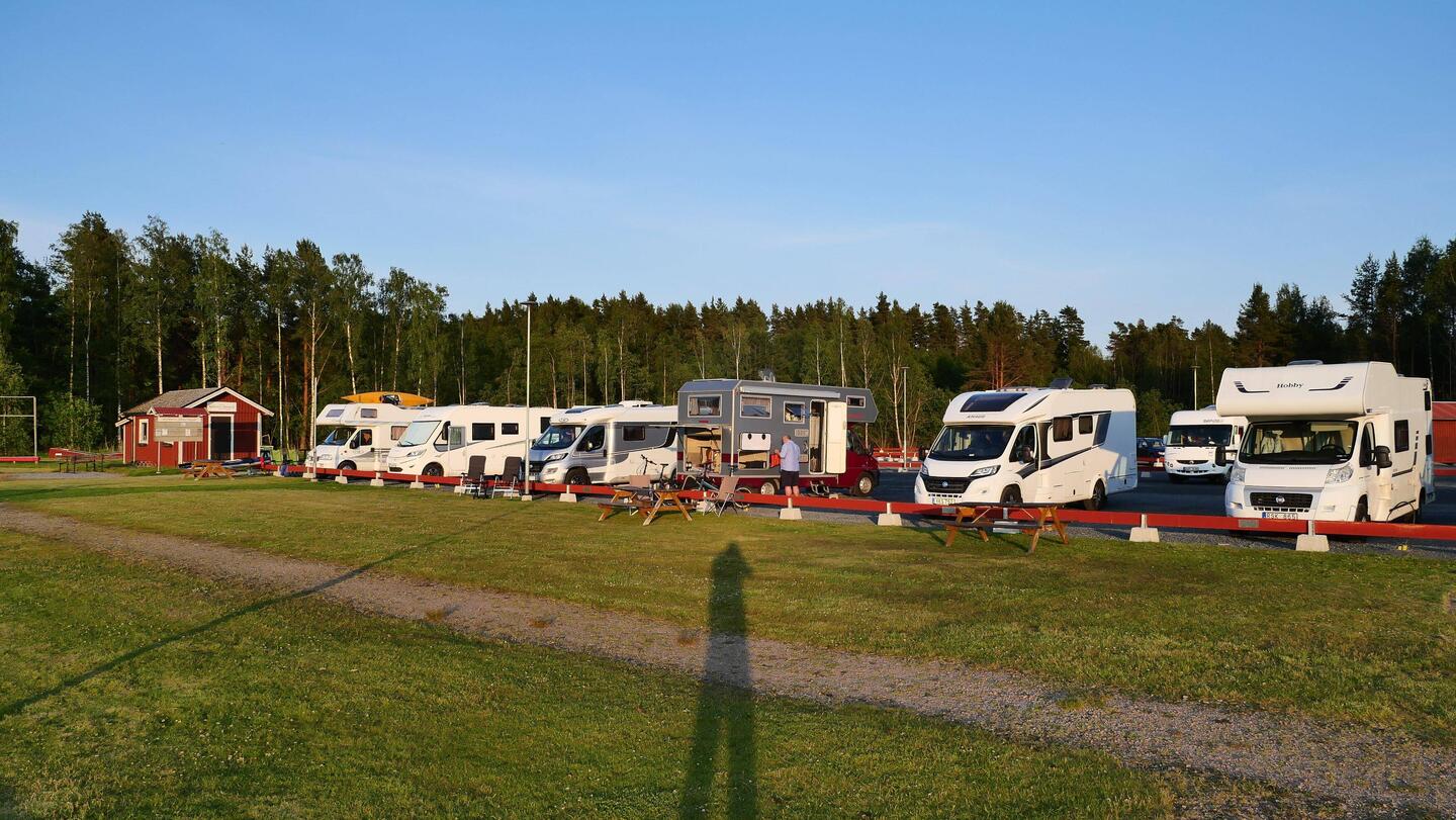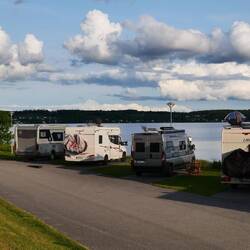 Weiterfahren oder doch noch einen Tag bleiben? Erst mal die Räder runtergeholt und zum nahegelegene Schloß gefahren. Von weitem waren dort schon viele geparkte Autos zu erkennen. Es wurde dort ein großes Reitturnier ausgetragen und die Dressur konte wir uns eintrittsfrei ansehen. Es war eine tolle Veranstaltung. Wir schlenderten noch bisschen über das Gelände und entschieden uns denn doch, heute noch weiterzufahren. Also zurück zum Platz. Wasser tanken und entsorgen. Um 12:30 Uhr kamen wir los. Wir brauchten dringend mal wieder Strom und so entschieden wir uns für einen günstigenStellpatz in Karlskoga. Nach 650km und aufleuchtender Reserveleuchte mussten wir dann vor Örebro denn doch noch zum Tanken abfahren. Es waren dann noch 40 km und wir fuhren auf einen tollen Stellplatz der nur wenig belegt war. Alle Plätze direkt am See gelegen und toller Infrastruktur. Es war noch recht schattig, was sich dann aber zusehends änderte. Kurze Hose an Fahrräder runter und die Umgebung erkunden. Als wir zurück kamen war es so warm, dass wir noch lange draußen sitzen konnten. Abends gab es dann Kötbullar, super lecker. Und da uns auch noch ein hervorragendes WLAN bereitgestellt wurde, konnten den diesmal doch sehr spannenden Tatort streamen. Dieser Platz hat volle 5 Sterne von uns verdient.
