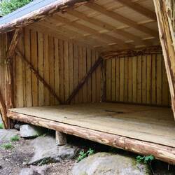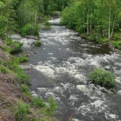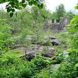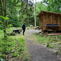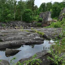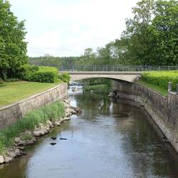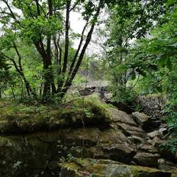 Unser Abstecher ins Landesinnere kam nicht von ungefähr. Der Reiseführer bezeichnet die Straße 716 von Gällerad nach Askome entlang des Ätran und Ätrafors Stausees als eine der schönsten Straßen Schwedens. Unserer Übernachtungsplatz am Svarten See liegt nicht mehr weit davon entfernt und so waren wir schnell nach unserem Aufbruch um 10 Uhr in Gällerad angekommen. Leider läßt sich die Sonne bisher noch nicht blicken und schmälert damit die Eindrücke der Strecke. Am Ende der Strecke konnte man noch die Ruine der alten Staumauer des bis 1964 betriebenen Wasserkraftwerks besichtigen. Hierfür parken wir an einem kleinen ausgewiesenen Parkplatz und folgten den Beschreibungen, die auch in deutsch zu lesen waren und kamen an einem schön angerichteten Shelter vorbei bis zu der Staumauer.