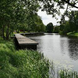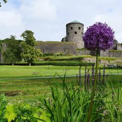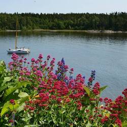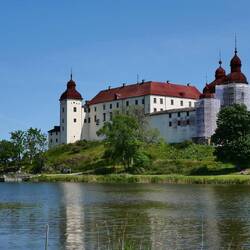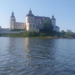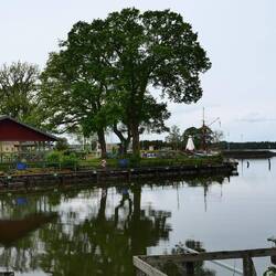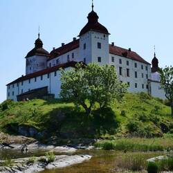 Wir wollten uns heute das Läckö Slott ansehen und wählten den Stellplatz in Spiken als geeigneten Ausgangspunkt. Wir fuhren um 10:15 Uhr los und standen eine Stunde später mutterseelen alleine auf einem neu angelegten riesigen Stellplatz. Das sollte sich aber noch ändern. Das idyllische Hafen Ambiente überzeugte uns schnell, hier zu bleiben. Wir schauten uns das Angebot im Hafen an, aßen Eis und kauften mal wieder unwiderstehlich aussehenden Stremellachs, bevor wir mit den Fahrrädern zum Schloss fuhren. Es waren nur 3,5 km abseits der Straße über einen Feldweg zu erreichen. Schön gelegen aber doch ein bisschen renovierungsbedürftig; darum war die Front auch schon eingerüstet. Der Besuch hat sich aber trotzdem gelohnt. Besonders der liebevoll angelegte Garten war eine Augenweide.