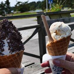 Heute ließen wir es gemächlich angehen. Der Wind hatte wieder aufgefrischt, somit war das Paddeln für heute gestrichen. Gegen Mittag entschlossen wir uns dann doch, mit den Fahrrädern nach Smögen zu fahren. Der erste Halt war vor der Brücke. Sitzbänke luden zum Verweilen ein. Und wir hatten die Insel Smögen vor uns liegen. Zuerst wollten wir uns das Naturreservat von Nord-Smögen ansehen. Wir fuhren über die Brücke und bogen rechts zum Womostellplatz ab. 500m weiter begann das Reservat. Wir schlossen die Räder ab und genossen auf einem Rundkurs entlang und über die rundgewaschenen Felsen die Weitsicht. Wir belohnten uns anschließend mit einem Eis, bevor es dann ins Getümmel von Smögens Hafen ging. Parallel fand der Einlass zu dem großen Mittsommerfestival statt und es liefen dementsprechend viele gestylte junge Menschen rum. In einem Fischgeschäft mit Bistro gönnten wir uns zwei lecker zurecht gemachte Krabenbrote und Bier. Auf der Rückfahrt noch ein Stopp in Kungshamn Hafen und nochmal Eis gegessen. Somit brauchten wir uns um das Abendessen keine Gedanken mehr zu machen. Unser obligatorischen Bad nahmen wir gleich nach unserer Ankunft am Campingplatz. Dann noch gemütlich draußen sitzen mit Cracker und einem Glas Rotwein. Morgen soll es weitergehen. Das Boot ist noch nicht verpackt; vielleicht klappt es ja morgen noch mit einer Tour.Read more