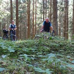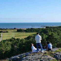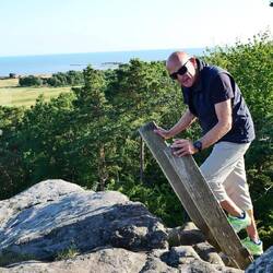 Wir nahmen die Fahrräder ab und wollten uns in Richtung Kinnekulle mit 290m Höhe aufmachen. Die Strecke begann gleich mit heftiger Steigung, die uns den gesamten Weg mal mehr oder weniger angestrengt hat. Petra wollte schon wieder zurück fahren. Bei Kanelboller, die wir uns während der Pause gönnten, konnte ich sie denn doch zum Weiterfahren überreden. Die letzten 4 Kilometer wurden abenteuerlich. Wir bogen in einen Waldweg ein, der sich immer mehr als Wanderweg zeigte und teilweise nur durch schieben überwunden werden konnte, Aber wir wurden belohnt. Nach dem letzten steilen Aufstieg, den wir schieben mussten, erreichten wir das Plateau des Kinnekulle in 290 Metern Höhe. Wir genossen die herrliche Aussicht und die Wärme, bevor wieder zurück fuhren. Jetzt nur noch bergab und das ganze 12 Kilometer lang. Eine ganz tolle Tour, die wir mit einem Bier am Ziel begossen haben. Dann freuten wir uns auf das Dorschfilet. Gebraten habe ich draußen auf dem kleinen Kocher. Es war zusammen mit dem Weißwein ein Gala Dinner. Belohnt wurden wir denn noch mit einem großartigen Sonnenuntergang.