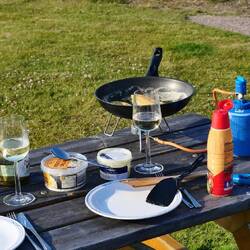Vom Strandparkplatz Falkenberg bis zu dem Stellplatz Grimsholmen waren es keine 10 km. Der schmale Küstenweg wurde gesäumt von tollen Wohnhäusern mit Blick auf den Kattegat. Der Stellplatz liegt auf einer Wiese eines landwirtschaftlichen Betriebes und als wir davor standen, hatten wir auch die Erinnerung vom letzten Mal wieder präsent. Hier sind wir damals schon mit dem Fahrrad dran vorbei gefahren, als wir auf dem Campingplatz in Ugglarp waren. Der Platz war einfach aber liebevoll angelegt. Wir konnten uns einen Platz aussuchen. Die Betreiberin kam auch gleich zum kassieren vorbei und gab uns noch einige Tipps. Bis zum Wasser sind es 900m und der gegenüberliegende 52 m hohe Smörkull bietet eine gute Aussicht. Also Badesachen gepackt und einen schönen Waldweg durch das Naturreservat bis zum langen Sandstrand gelaufen. Allerdings ging es sehr flach ins Wasser, was mir nicht zusagt, aber Petra völlig egal war...haupsache ins Wasser. Anschließend liefen wir den Strand noch bis zur Flußmündung des Suseån. Diesen Fluss bin ich vor zwei Jahren schon einige Kilometer aufwärts gepaddelt. das Wasser ist dunkelbraun und erinnert uns an so manche Orte in Südafrika. Am Campingplatz angekommen, ging Petra unter die Freiluftdusche und ich wanderte noch auf den Smörkull. Wir waren beide begeistert. Petra von der schönsten Dusche dieses Urlaubs und ich von dem Besteigen des Bergs mit toller Aussicht. Den schönen Tag beendeten wir mit gegrillten Bratwurst an Gemüsepasta und einem Glas Weißwein.
