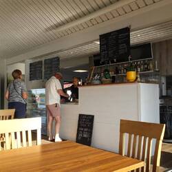 Heute haben wir das Auschecken am Campingplatz voll ausgereizt. Wir waren kurz geneigt noch eine Nacht zu verlängern. Die Lage hier ist ja großartig. Aber es bließ noch immer ein kräftiger Wind und wir fuhren weiter. Alles wieder aufgefüllt und entsorgt. Dann noch einen Einkaufsstopp am Supermarkt, wo wir gestern schon mit dem Fahrrad waren. Da wurde Petra schon auf die Frische Theke für Fisch aufmerksam.