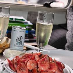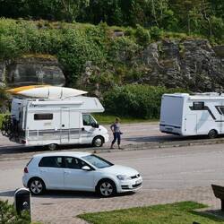 Heute morgen vor dem Frühstück noch einmal 1 Stunde gepaddelt. Als ich zurück kam, hatte Petra schon das Frühstück vorbereitet und den Kaffee gekocht. Anschließend machten wir uns abreisebereit. Wir fuhren in den fetten Rückreiseverkehr rein und benötigten bestimmt eine 3/4 Stunde länger, um auf die Autobahn E6 zu kommen. Dann ging es wieder in bekannte Gefilde; wir fuhren Richtung Orust ab und kamen auch an dem Stellplatz in Henån vorbei. Wir fuhren über Orust weiter auf die Insel Tjörn. An einer Baggeri hielten wir, um noch Kuchen für heute Nachmittag einzukaufen. Dann dauerte es nicht mehr lange und wir erreichten Klädesholm. Ein Stellplatz war noch frei. Da das Wetter wieder umschlagen wird, nutzten wir die Zeit, und fuhren mit den Rädern zu unserer liebgewonnenen Badestelle auf der letzten Insel des Archipels. Das Baden war unser Highlight des Tages und der Hauptgrund, hier wieder herzukommen. Ausser schönen Häusern verteilt auf 2 Inseln wird hier ansonsten nicht viel geboten. Da sind 300 Skr für den Stellplatz ohne Strom auch schon happig. Der Wind nahm wieder zu und der Regen ließ auch nicht mehr lange auf sich warten. Kaffeetrinken, relaxen, stricken; mehr war für heute nicht mehr angesagt....ach ja, Räkör 1/2 kg hatten wir bei unserer Abfahrt heute Mittag noch gekauft. Eine kühle Dose Prosecco, der Rest Weißbrot und dazu die Räkör. Mehr braucht man nicht. Hoffen wir mal darauf, dass sich das Regengebiet bis morgen wieder verzogen hat. Leider müssen sich auch 2 liebgewonnene Freunde von unserer weiteren Reise verabschieden...Danke liebe Dorchen für das leckere Getränk 😉