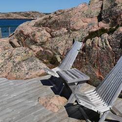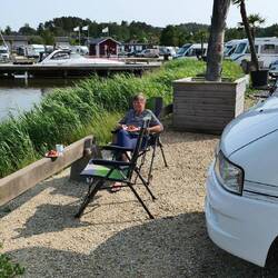 Nach einer durchgeschüttelten Nacht vom nicht nachlassenden Wind, sind wir wie geplant heute auf unseren gebuchten Campingplatz gefahren und waren auch pünktlich um 12 Uhr an der Rezeption. Wir bekamen die Platznummer 14 am Wasser in 2. Reihe aber trotzdem schön gelegen. Wir genossen mal wieder das Sitzen vor dem Wohnmobil, da der Platz hier geschützter als der in Lysekil liegt. Wir beschlossen heute mal wieder den Skotti in Betrieb zu nehmen. Schließlich hatten wir noch ein schönes Huftsteak im Gefrierfach. Vorher ging es aber zu dem tollen Badeplatz hinter den Felsen. Der liegt total im Windschatten, das Wasser glasklar, tief und ohne Quallen. Die Wassertemperatur beträgt ca. 15 Grad und wir waren bestimmt 10 Minuten in dem erfrischenden Nass. Das Steak war der Hammer. Petra hatte Salat geschnippelt und ich bin mit dem Fahrrad nach Kungshamn zum Coop gefahren, um noch Zutaten für ein Tsatziki einzukaufen. Den Abwasch erledigte die Minna in 3 Minuten gratis. Da hatten wir uns auch drauf gefreut.