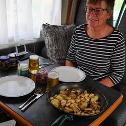 In Frillesås sind wir von der E6 abgefahren, um uns einen Stellplatz dort anzuschauen. Bei anderen Wetterbedingungen wären wir gerne geblieben. Der Sturm trieb uns ins Landesinnere. Wir fanden einen schön gelegenen Parkplatz direkt am Svarten See. Ein Wohnmobil stand dort schon und ein 3. aus Erfurt kam kurz nach uns. Schön Kaffee getrunken und dann noch eine Stunde durch den Wald spaziert und am See zurückgekehrt. Abends gab es dann den leckeren Hering von Klädesholmen mit Bratkartoffen. Morgen soll der Sturm nachlassen, dann geht's wieder an den Kattegat.
