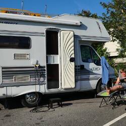 Das Waschen und Trocknen ist im Preis von 20 € ebenso mit drin wie auch der Strom. Also ein super Preis für diesen schön gelegenen Platz an der Marina. Supermarkt und auch ein tolles Fischgeschäft ist nahe bei.