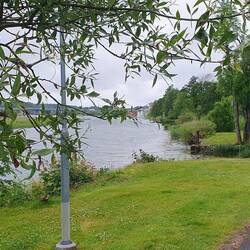 Von Hindend Rev sind wir dann weiter nach Vänersborg gefahren. Dort hatte ich in park4night einen ansprechenden kostenlosen Stellplatz ausfindig gemacht, Wir wurden nicht enttäuscht. Es war ein großer Parkplatz, der an einen Park angrenzte und der Weg zum Vänern war auch nicht weit. Petra fuhr schnell zu Lidl, damit wir wieder Kuchen zum Kaffeetrinken bekamen. Abends gab es nochmal Kötbullar und wir machten anschließend noch einen kleinen Gang entlang des schön angelegten Parks.