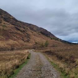 Nach 10 km auf einer schmalen Asphaltstrasse entlang des Lochs biege ich ab ins Conaglen. Schon erheben sich die Hügel links und rechts, glänzt ein verbreiterter Bach, die Farben bräunlich,Leggi altro