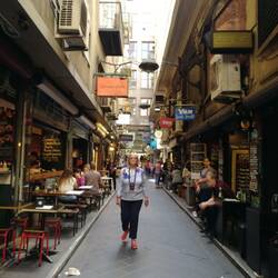 Und dann kommt ein Sushi Laden, der uns dazu zwingt, zwei Rollen zu kaufen, da die so lecker aussehen und auch sind 😋 als Nachspeise gibt's dann noch Maccarones, die eigentlich viel zu teuer sind, aber jeden Cent wert sind, da die wirklich ein absoluter Gaumenschmaus sind und ich bestimmt noch sehr lange daran denken muss. 😍 Obwohl wir noch satt vom Frühstück sind, holen wir uns ein Tässchen Kaffee, weil Melbourne für seinen guten Kaffee bekannt sein soll und wir das natürlich testen müssen😁