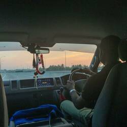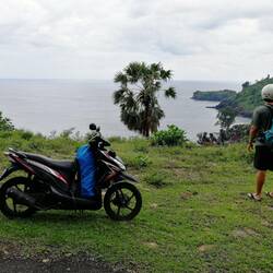 Die Fahrt dort hin war echt schon ziemlich lustig, denn wir haben festgestellt, dass "Karre's" Blinker nicht funktioniert.... Tja, wir mussten einfach improvisieren und mit unseren Händen, den "Blinker" spielen. Das heißt, derjenige der hinten sitzt, streckt seinen Arm in die Richtung aus, in die wir abbiegen und hält nach dem hinteren Verkehr Ausschau. Heute hätte ich dabei fast einen Spaziergänger mitgenommen...🙈 Als wir dann am Strand angekommen sind und eine herrliche Erfrischung im Meer genommen hatten, wollten wir weiter um noch etwas die Küste zu erkunden... Aber wir hatten die Rechnung ohne Karre gemacht. Anscheinend passte ihm irgendetwas nicht, vielleicht weil heute Sonntag und eigentlich sein Ruhetag war?! Er sprang nämlich erst nicht an und als der Motor dann nach etlichen Versuchen doch aufheulte, machte er zicken beim Rückwärtsfahren😂 also musste ich selber ran und kräftig schieben....