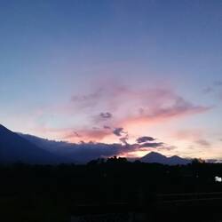 Da es schon ziemlich spät ist und wir noch 2 Stunden nach Amed fahren müssen, brechen wir nun auf. Wir fahren komplett durch, nachdem wir den Roller nochmal vollgetankt haben. Hannes brettert mit 70 kmh die Küste entlang und ich genieße den Ausblick aufs Meer. Es wird immer dunkler und uns fliegen dabei 10000 Insekten ins Gesicht, was manchmal ganz schön piekst😂 ich hab zu tun, dass mein Helm bei der Geschwindigkeit nicht davon fliegt, weil der ziemlich locker sitzt und versteck mich einfach hinter Hannes, der alles abbekommt, was auf der Fluglinie so herum geistert. 😁 Der Himmel um den Vulkan herum hat sich komplett rot gefärbt und ist wunderschön anzuschauen. Wir müssen sogar kurz anhalten und dieses Panorama mit der Kamera festhalten😍