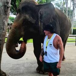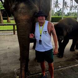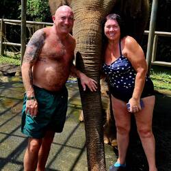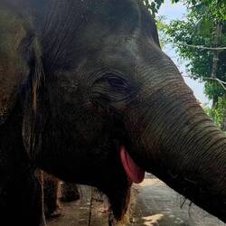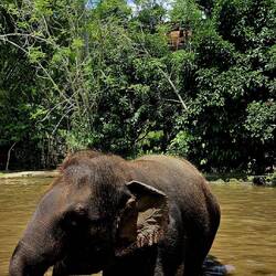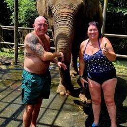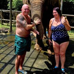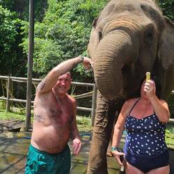 Having breakfast with the Orangutans and playing with the elephants, mud play, then washing and bathing, amazing experence