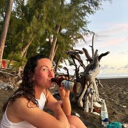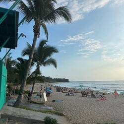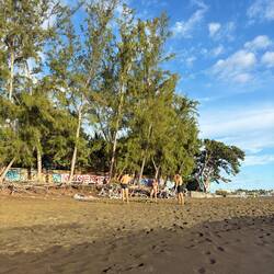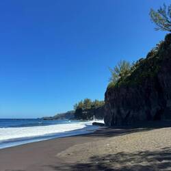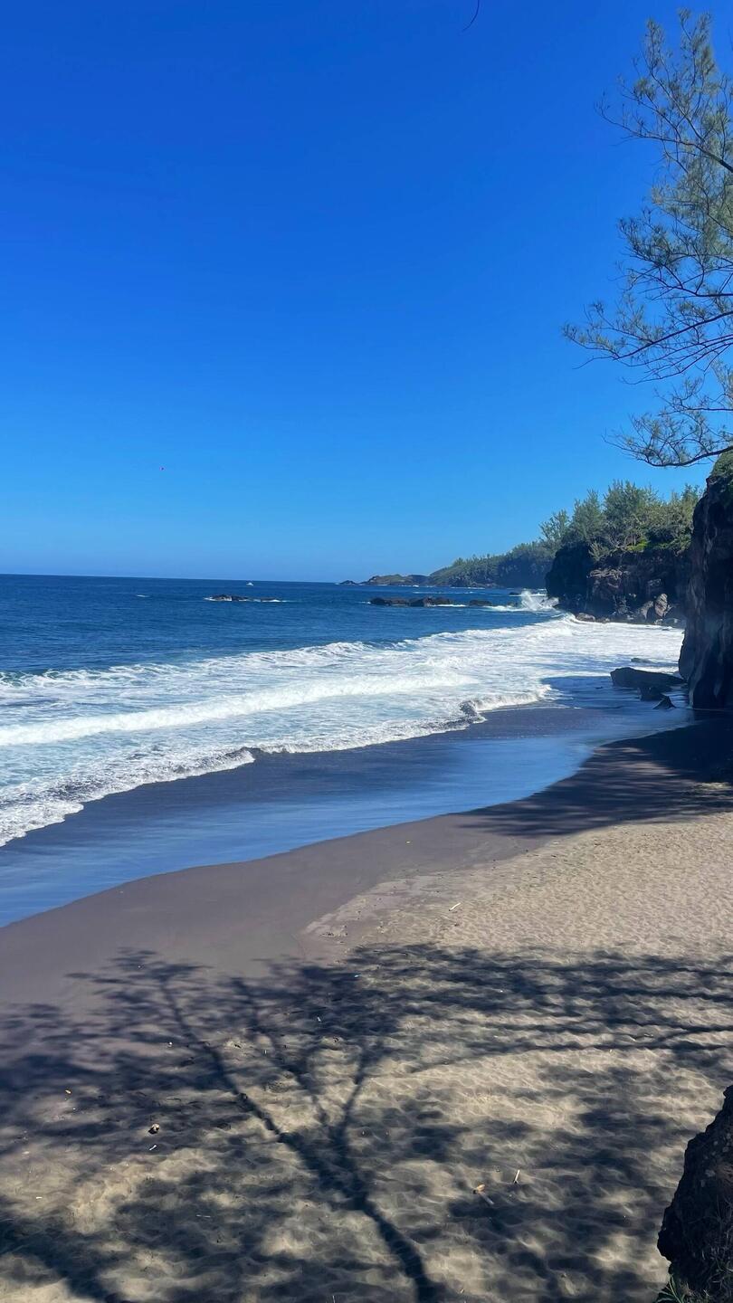 Après 1h de route on fait un premier stop à la plage « Ti sable », une belle plage de sable noire.