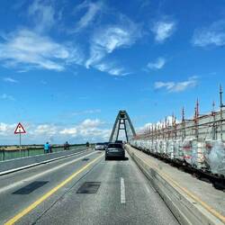 Auf dem Weg zum heutigen Ziel (Skulekogens Nationalpark) haben wir die 14. größte Hängebrücke der Welt (Quelle: Wikipedia) auf der E4 überquert.