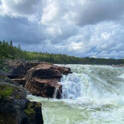 Kurz vorm heutigen Ziel wurde noch der Fluss Kalix, welcher einer der besten Lachs-Flüsse Europas sein soll, beim beeindruckenden Jockfall überquert.