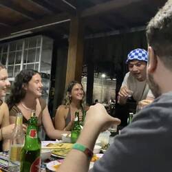 Am Abend stoßen dann auch schon meine ersten Gruppenkollegen, die mit dem Bus aus Hanoi angereist sind, dazu und wir haben unser erstes gemeinsames „Family-Dinner“ mit vietnamesischen Essen und, unser aller Favorit, „Happy Water“.🙂 Happy Water ist ein lokaler Reiswein, abgefüllt in Plastikflaschen, der mit jedem Schluck schlimmer schmeckt.🥸 Trotzdem, oder vielleicht gerade deswegen, wird das „Happy Water“-Trinken und vietnamesische Trinksprüche-Raushauen in den folgenden Abenden zu unserer Lieblingstradition (also zumindest von denen, die sich davon NICHT übergeben müssen…)😅