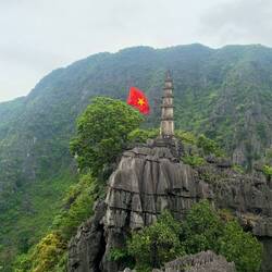 Nach der Bootstour radle ich zur Hang Mua (und esse auf dem Weg für 2€ ein paar Frühlingsrollen - ein großes Wasser und eine supersüße Banane gibt‘s netterweise gratis dazu). Die Hang Mua ist ein wunderschöner Aussichtspunkt auf die Stadt - was für mich aber leider auch ein weiteres Workout bedeutet😩. Und in der Hitze auch noch - phuuuu, da ist man umso froher, wenn man dann von oben auf die schöne Landschaft herabblicken kann😍. Wieder unten angekommen relaxe ich noch ein bisschen beim Lotus-See🪷 (leider blühen nicht allzu viele Lotus-Blumen, aber ich bin glücklich über jede einzelne) und fahre anschließend wieder zum Hotel.