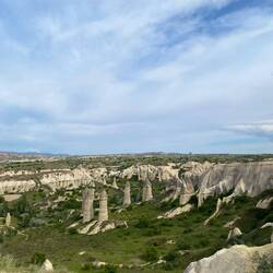 Einmal spaziere ich am Nachmittag in ein Nachbarsdorf, wo es ein perfektes Disney-Schloss geben würde🏰. Heim wandere ich über das ruhige Lovevalley❤️, bei dem die Ablagerungen noch einmal eine ganz besondere Form annehmen (ich gehe davon aus, dass es deshalb den Namen Lovevalley trägt…). Abends treff ich immer Andrew, einen netten Australier, den ich im Bus mach Göreme kennengelernt habe und mit dem ich mich eigentlich ganz gut verstehe. Wir gehen gemeinsam was essen, snacken Cookies und/oder wandern zu einer magischen Aussichtsplattform🍪. Am ersten Tag haben wir gemeinsam an einer Undergroundcity-Wandertour teilgenommen. Fazit davon: Tauben sind ein Symbol für Reichtum und Salgam kann ich für immer und ewig von meiner Drinkliste streichen.🧐