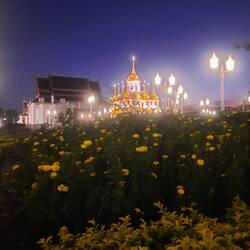 •der thailändische König wird fast noch mehr angebetet als Buddha... überall stehen riesige vergoldete Bilder von ihm und seiner Frau - und wenn Leute vorbeigehen, dann verbeugen sie sich.👑Les mer