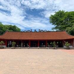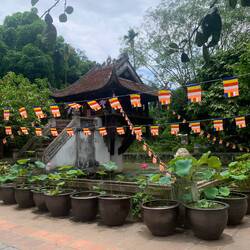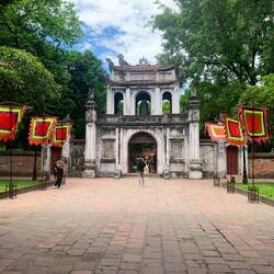Dafür startete der Tag heute voller Energy. Frühstück auf der Rooftopbar und danach ging es zu Fuß durch die Stadt. Uns überraschte, dass wenig Leute hier Englisch können. Zudem bleibt meine bisherige Meinung zum Straßenverkehr. Allein als Fußgänger die Straße zu kreuzen, grenzt schon an einer Mutprobe. Ich hab mich heut nicht getraut rüber zu laufen & hab auf nen Einheimischen gewartet, damit ich dicht an ihm über die Straße komme😅 Gegensätzlich dazu gibt es hier auch sehr friedliche, idyllische und bunte Orte. Der Temple of literature hat mir persönlich am besten gefallen und uns einen guten Eindruck gegeben, was uns hier so erwartet. Mein Highlight war ja,dass Robins Hose zu kurz war und er jetzt auch mit so nem schicken Sarong rumläuft 😁 Er war nicht begeistert. Sogar so Security Leute haben ihn ausgelacht aber ich hab brav ein Foto davon gemacht & es hier als Titelbild verwendet 😅