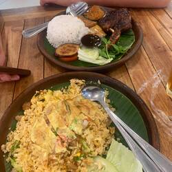 Da wir bis zu unserer Weiterfahrt abends noch etwas Zeit hatten, fuhren wir in die sogenannte Millennium Mall und wollten etwas essen. Die Karte war aber komplett auf indonesisch. Also haben wir nach Bildern entschieden und es war sehr lecker 😋 Czytaj więcej
