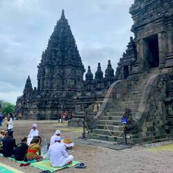 Nach dem Mittagessen fuhren wir ca. 1,5h zum Prambanan-Tempel. Hierfür hatten wir keinen Guide gebucht aber wir hatten Glück und konnten die Zeremonie zur Würdigung Shivas (Hinduistischer Gott) beobachten. Nachmittags fuhr uns der Fahrer wieder ins Hostel zurück und wir waren froh, dass wir Morgens schon angefragt hatten, ob wir eine Nacht verlängern können. Denn abends erfuhren wir, dass das Hostel total ausgebucht sei. Wir sind es bisher nicht gewöhnt, dass man alles soweit im voraus buchen muss. Aus diesem Grund nutzten wir die Zeit und planten die nächsten 5-6 Tage.