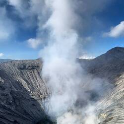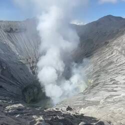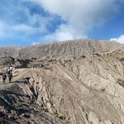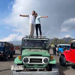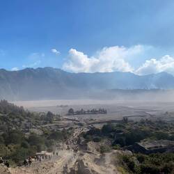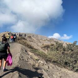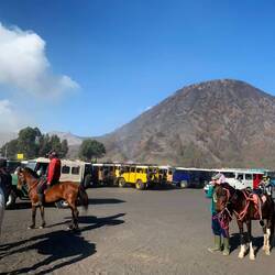 Um etwa 6:00Uhr ging es weiter. Wir standen solide 2h im Stau und selbst unser Fahrer hat währenddessen nen power-nap gemacht. Danach erwarteten uns ganz viele Guides mit Pferden, die uns auf den Krater bringen wollten. Ich liebe ja Tiere, vorallem Pferde aber das konnte ich nicht unterstützen und zudem waren es auch nur 30 Minuten. Also nahmen wir unsere Beine in die Hand und flitzten den Krater hoch! Man konnte wirklich direkt an den Kraterrand und sehen, dass er noch aktiv ist. Total cool und warm war es auch wieder 😎