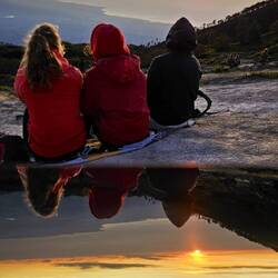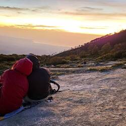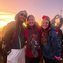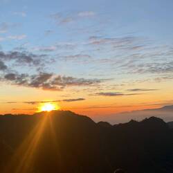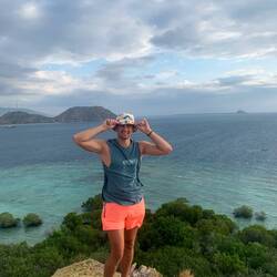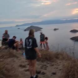 Danach sind wir zum Pink Beach gefahren. Der Strand ist tatsächlich pink!! Angeblich ist das wegen den Korallen. Wir konnten es uns nicht erklären aber es sieht total schön aus!! Nach dem pink Beach wurden wir wieder mit unserem Speedboot zu unserem eigentlichen Boot gefahren und durften dann nochmal vom Boot aus ins Wasser springen bevor es zum Padar Hill ging. Dort sind wir ungefähr 800 Stufen (nach Robin: genau 809) hoch gelaufen um uns dann oben den Sonnenuntergang anzugucken! Das Wetter war nicht so der Burner aber wir haben so coole Leute auf unserem und auch auf anderen Booten kennengelernt, dass wir gemeinsam den Sonnenuntergang geguckt haben und viel gelacht haben. Nele musste noch ihre Spielschulden einlösen und hat deshalb am Gipfel 20 Hampelmänner machen müssen.